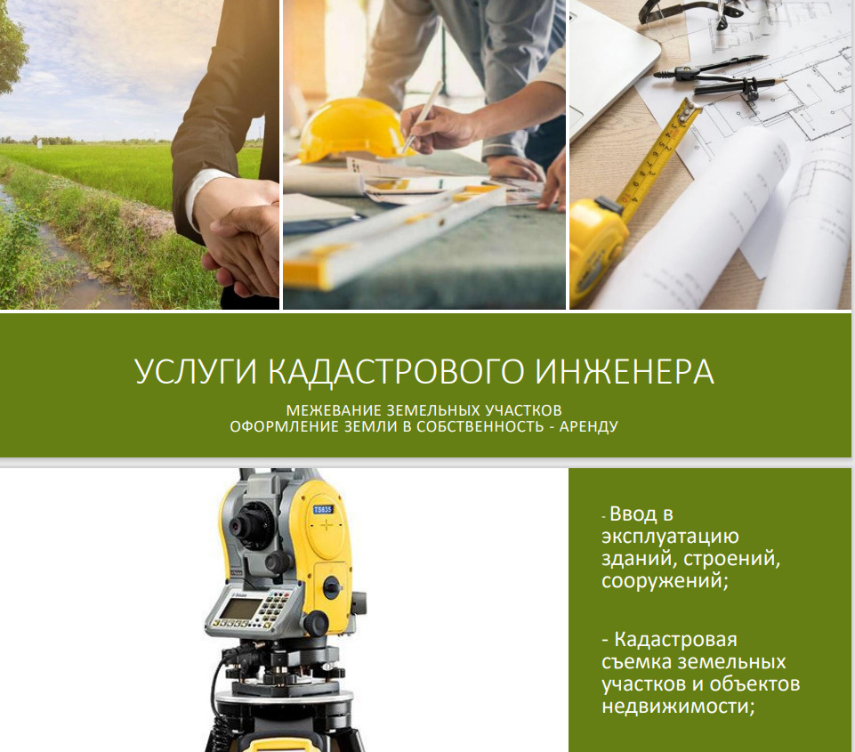 Описание: | Услуги кадастрового инженера по межеванию земельных участков в г. Пятигорск и Предгорному району - Межевание земельных участков; - Разделение, объединение и перераспределение земельных участков; - Заключение кадастрового инженера; - Кадастровая съемка земельных участков и объектов недвижимости; - Вынос границ земельных участков в натуру; - Оформление перепланировки и реконструкции; - Ввод в эксплуатацию зданий, строений, сооружений; - Регистрация прав собственности на объекты недвижимости; - Проектирование перепланировок и реконструкций зданий и сооружений; - Постановку объекта недвижимости на кадастровый учет; - Исправление кадастровых ошибок и др,. Определение границ участка при покупке-продаже, а также при передаче в залог банку (ипотека). Работаем как с юридическими, так и с физическими лицами. Наши профессионалы гарантируют качественное выполнение работ в соответствии с законодательством РФ. |
